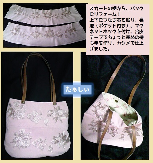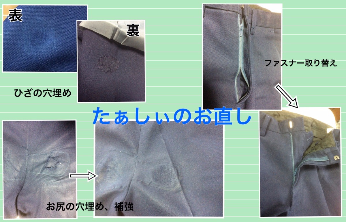 - お直し全般。洋服から、帽子・バック・アクセサリー等のグッズにすることも得意。