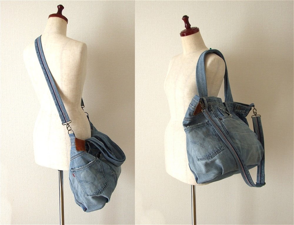 帆布トートバッグ、ジーパンからリメイクバッグ