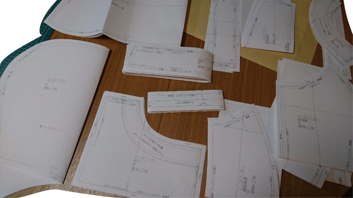 メンズパーカーパターン作成 参考サンプル型抜きパターン作成