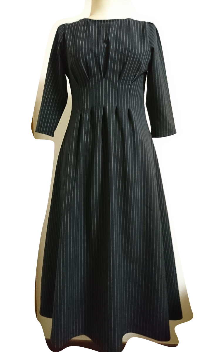 ストライプワンピース(着丈修正・似寄り生地で復元) 参考サンプル型抜きパターン作成 生地・副資材手配 柄あわせ縫製