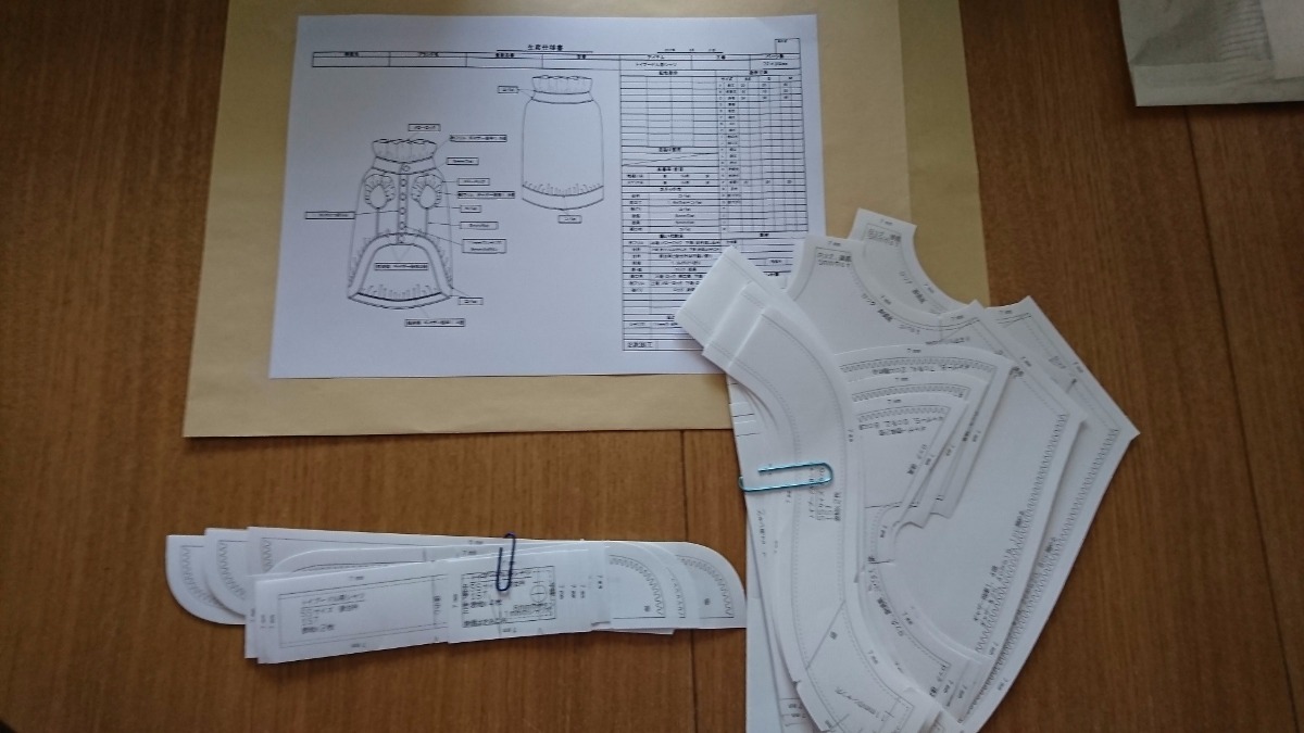 ペット服 参考サンプルからデザイン・サイズ修正ありパターン作成 グレーディング トワル作成 縫製仕様書作成