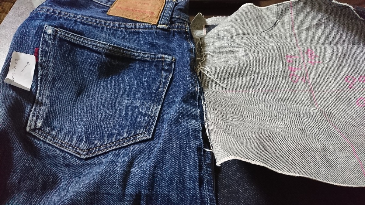 メンズ5PKデニムパンツ 参考サンプル型抜きパターン作成(生地縮率測定含み) グレーディング29inch~31inch 縫製仕様書作成