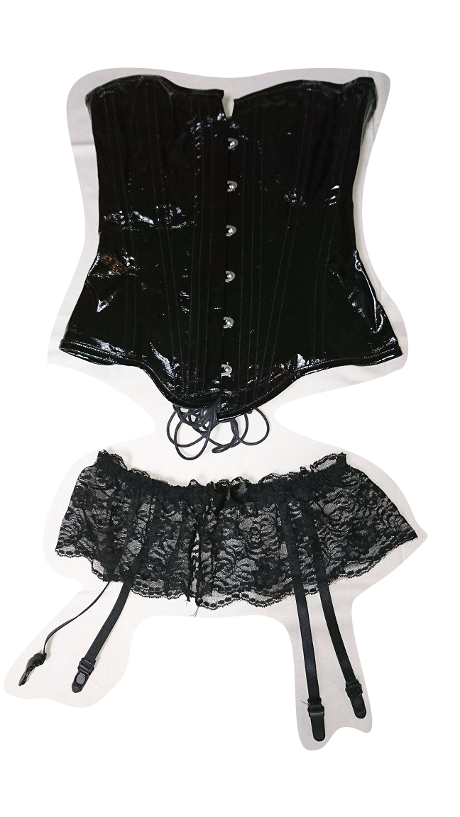 エナメルコルセット(コイルボーン仕様)・ガーターベルト 参考サンプル型抜きパターン作成 生地・副資材手配 サンプル縫製