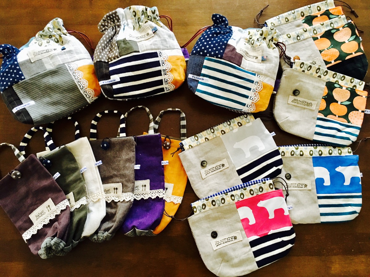 卒業後は事務職につきましたが、常に家庭で何かしら手づくり(ミシンや手縫い)をしていました。結婚後は育児をしながら、縫製会社で就職&内職を3年ほど勤め、その後、布小物の委託販売を始めるようになり、現在はイベントやネットでの販売もしています。