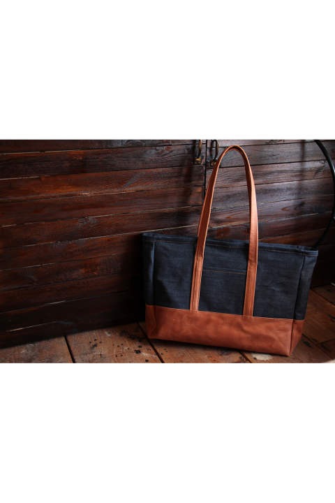 レザーx帆布、デニム