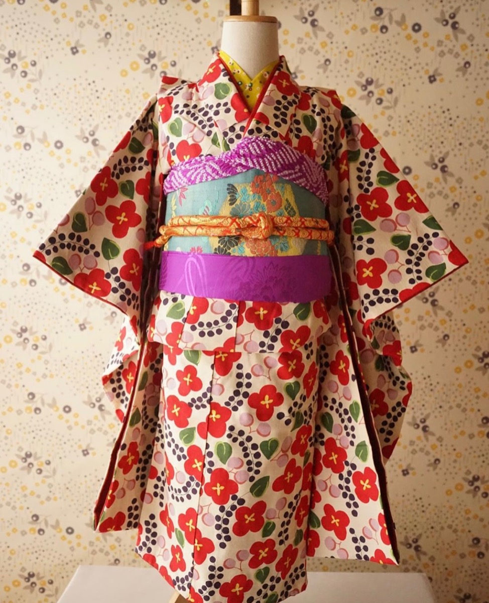 その後 結婚し子供が 産まれ 子供達に たくさんオリジナル着物を作り楽しんでいたところ 周りの方々の お力をうけ 今は、個人的に オリジナル子供着物を仕立て 七五三や卒業式のお着物レンタルを してます。