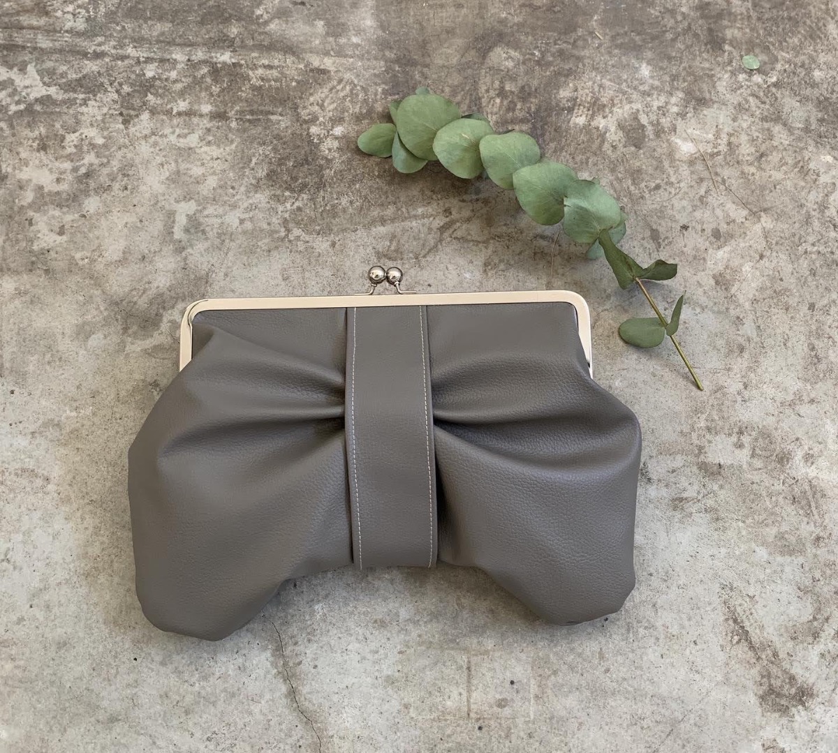 合皮生地でのバッグや小物、がま口を型紙の制作から縫製までしています。