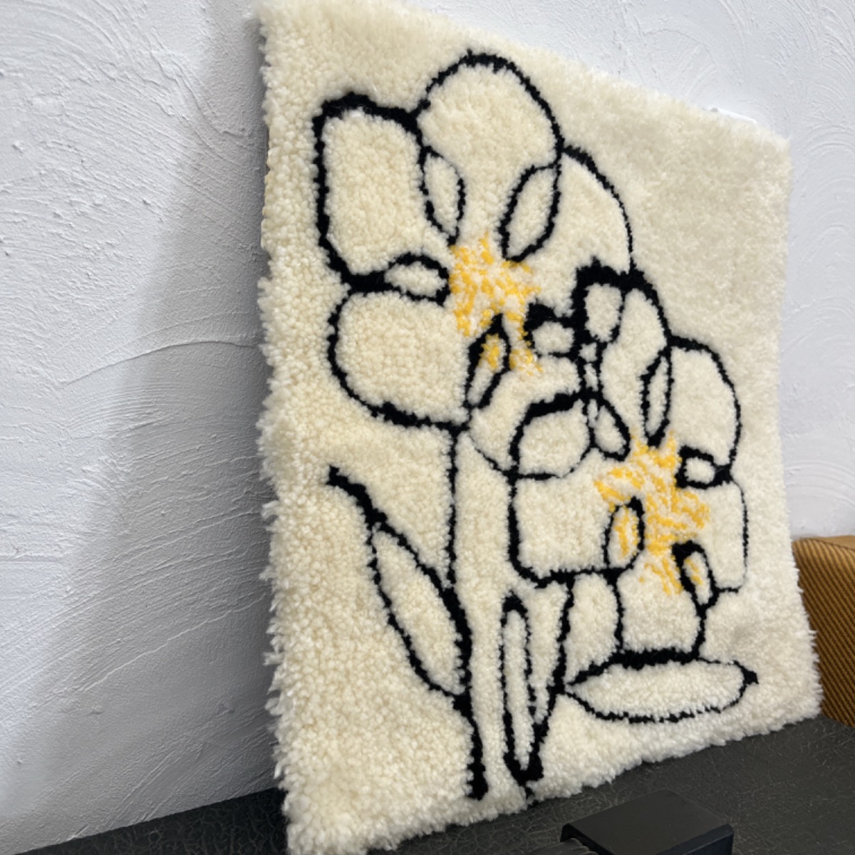 マクラメ編みでクッションカバーを作ったり、タフティングマットも行います。