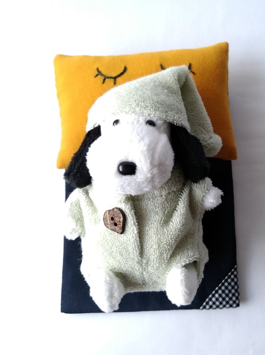 犬のぬいぐるみのお洋服と寝ぐらの作成